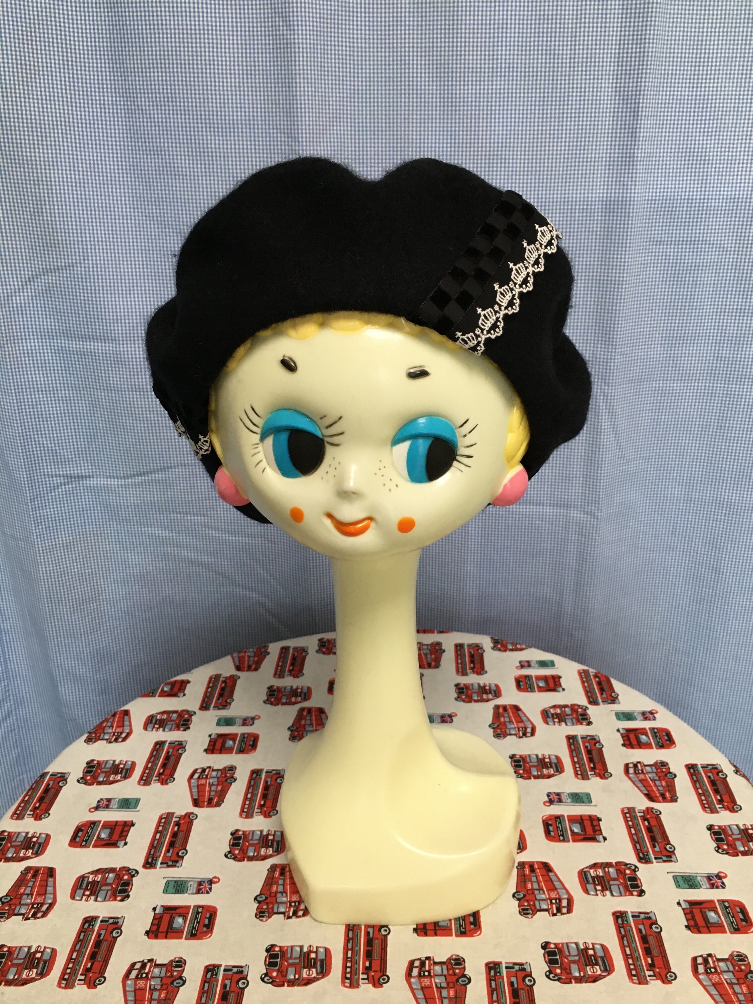 在庫一掃セール ¥3000 リボンとフリルを使った、ちょっぴりゴスロリ調のベレー 直径27センチ 被り口14センチ 洗濯不可