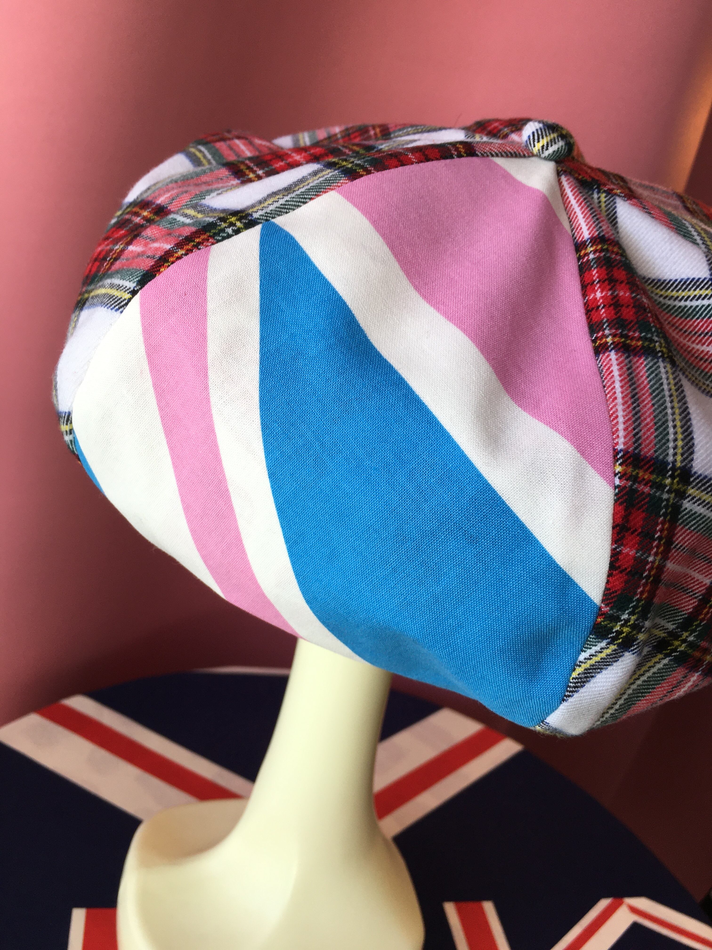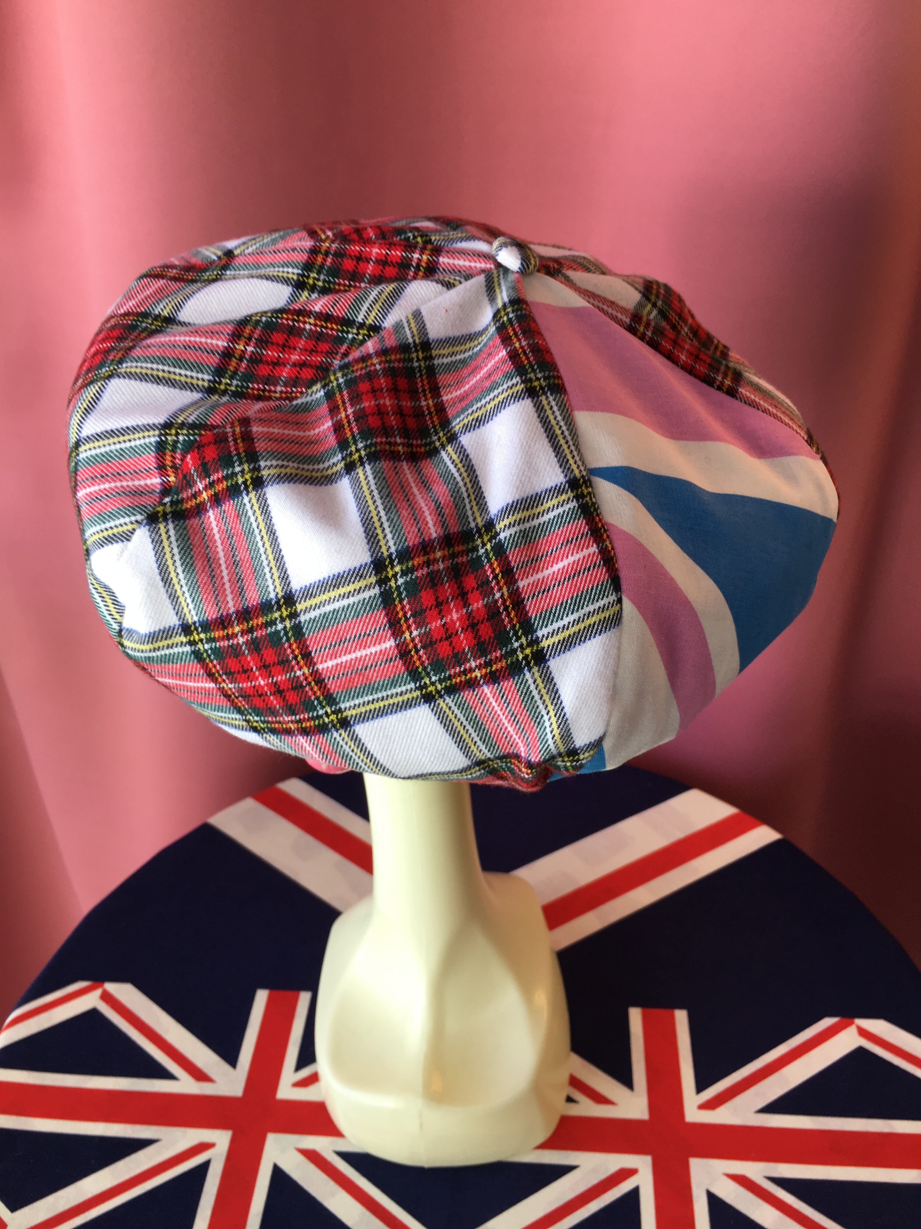 タータンチェック×ユニオンジャックの一部をあしらった6枚はぎのベレー帽です