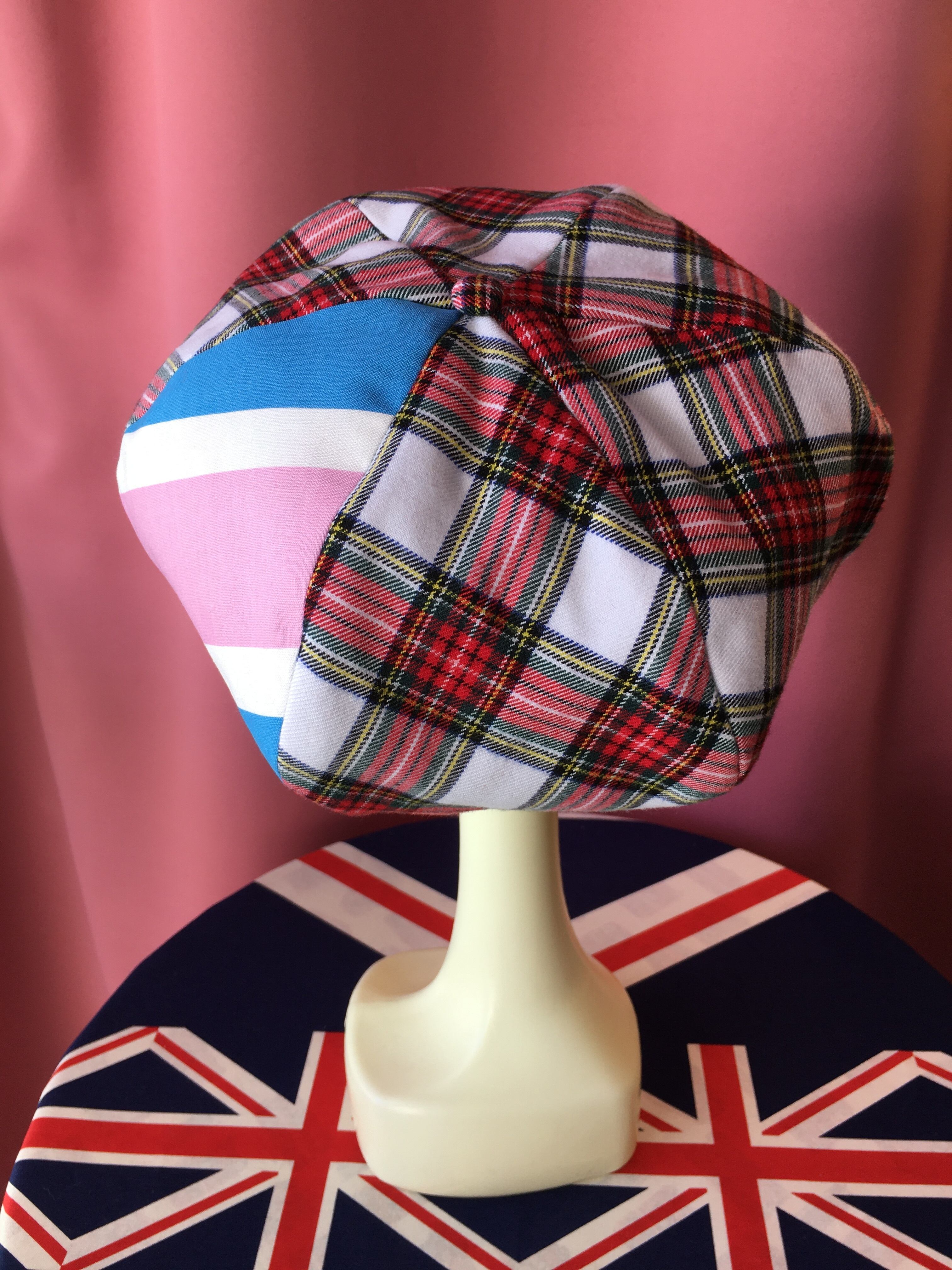 タータンチェック×ユニオンジャックの一部をあしらった6枚はぎのベレー帽です