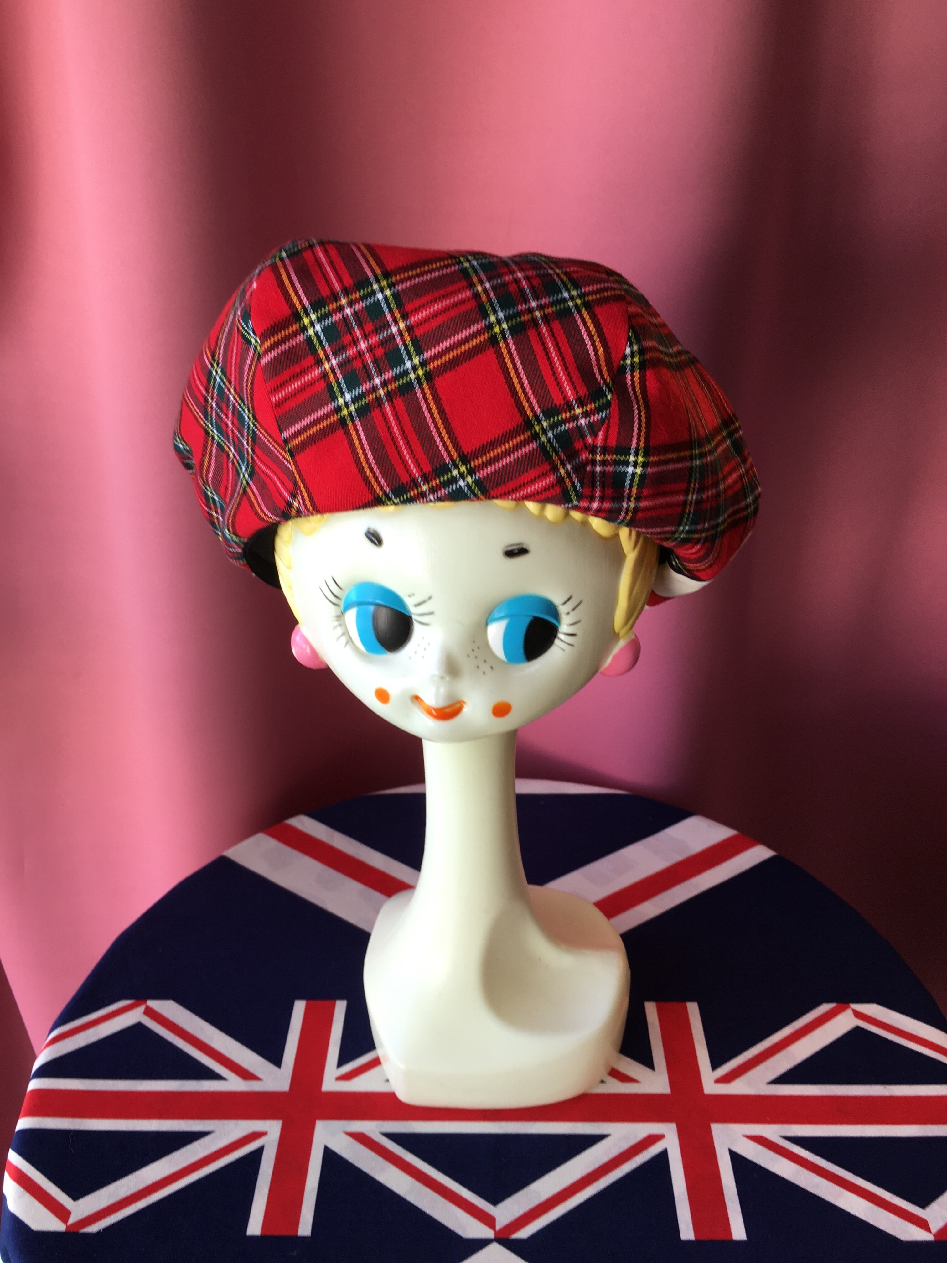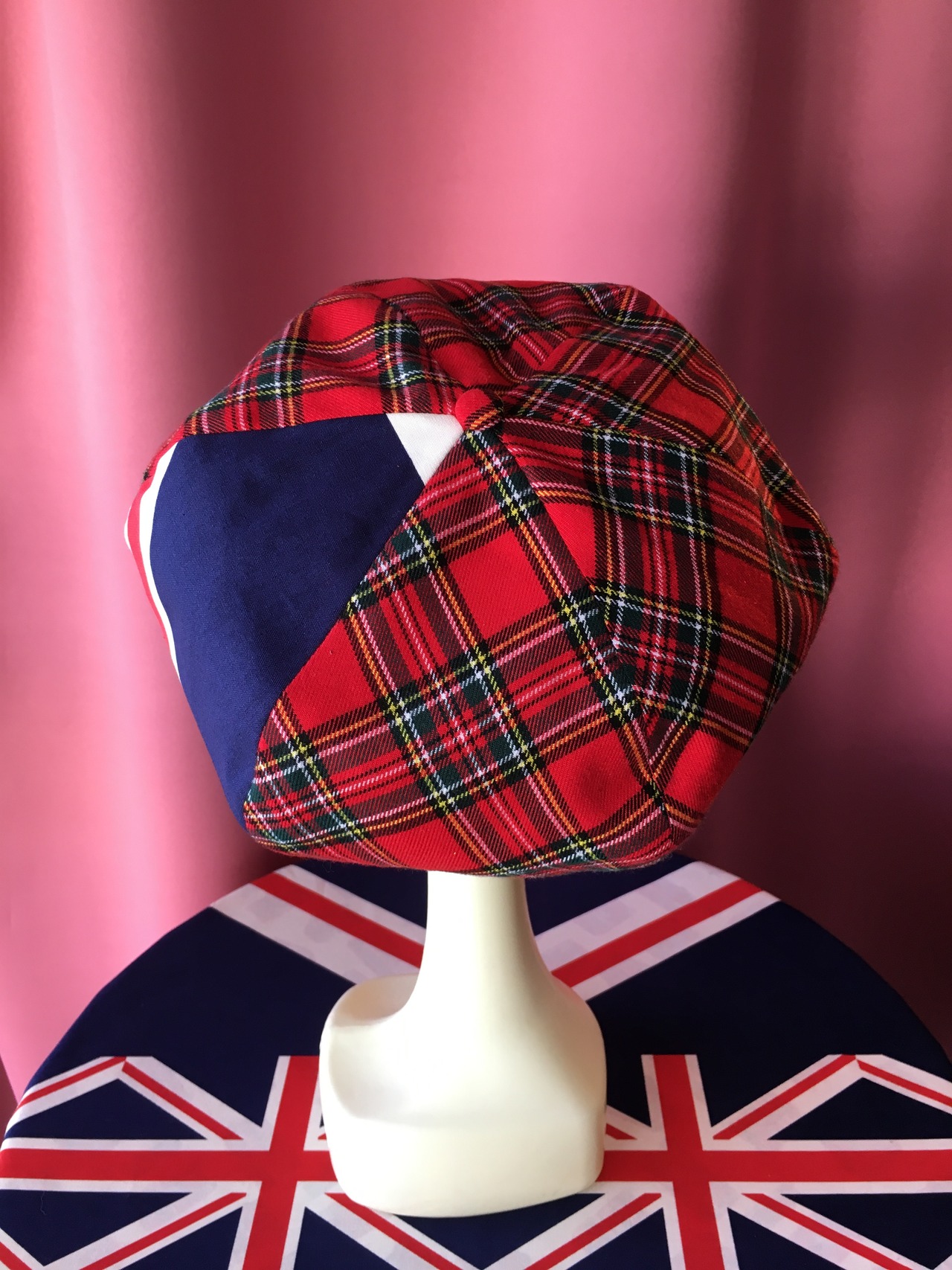 タータンチェック×ユニオンジャックの一部をあしらった6枚はぎのベレー帽です