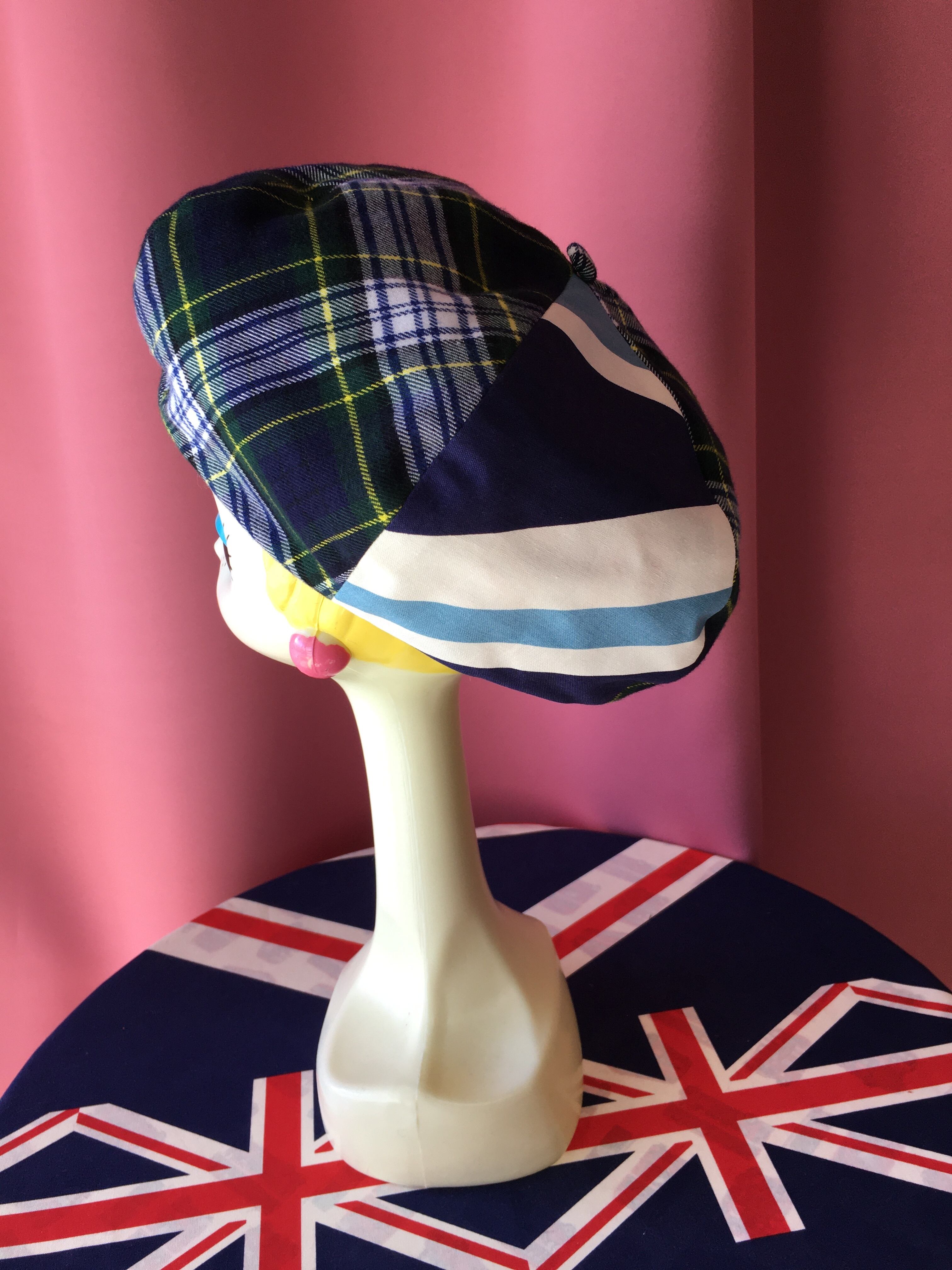タータンチェック×ユニオンジャックの一部をあしらった6枚はぎのベレー帽です