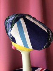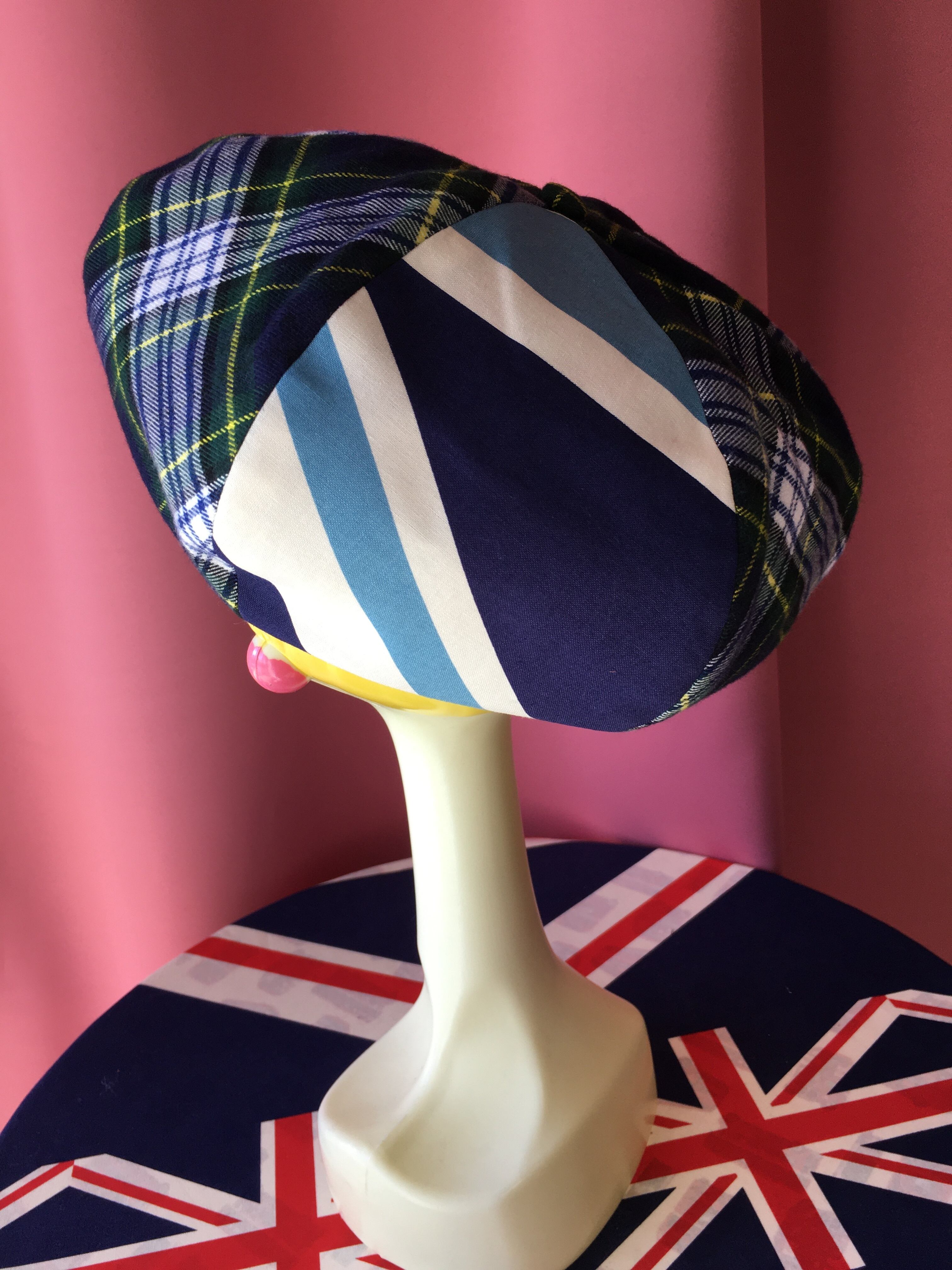 タータンチェック×ユニオンジャックの一部をあしらった6枚はぎのベレー帽です
