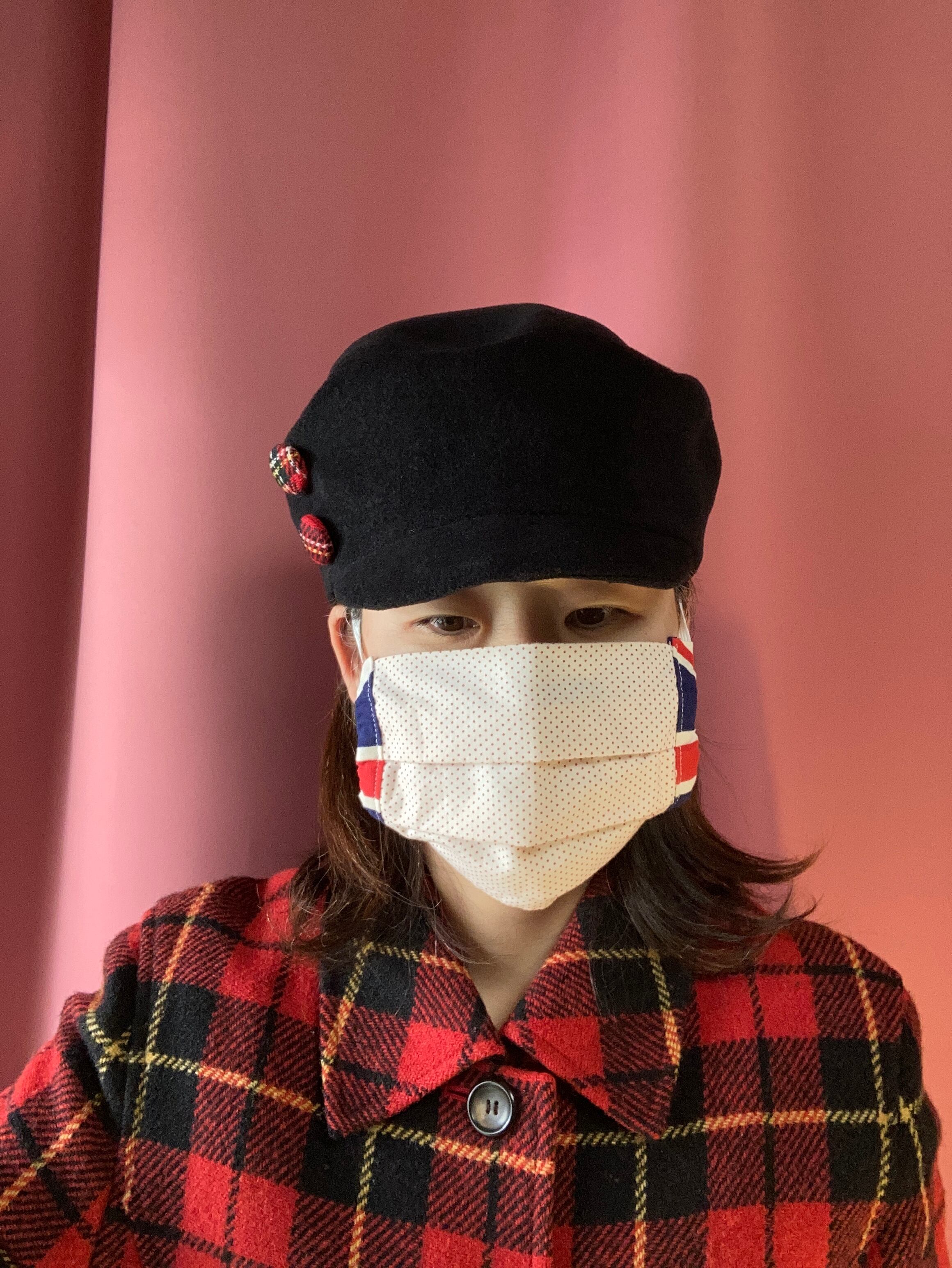 赤いタータンチェックのボタンがキュートなマリン帽 | すずしか帽子店