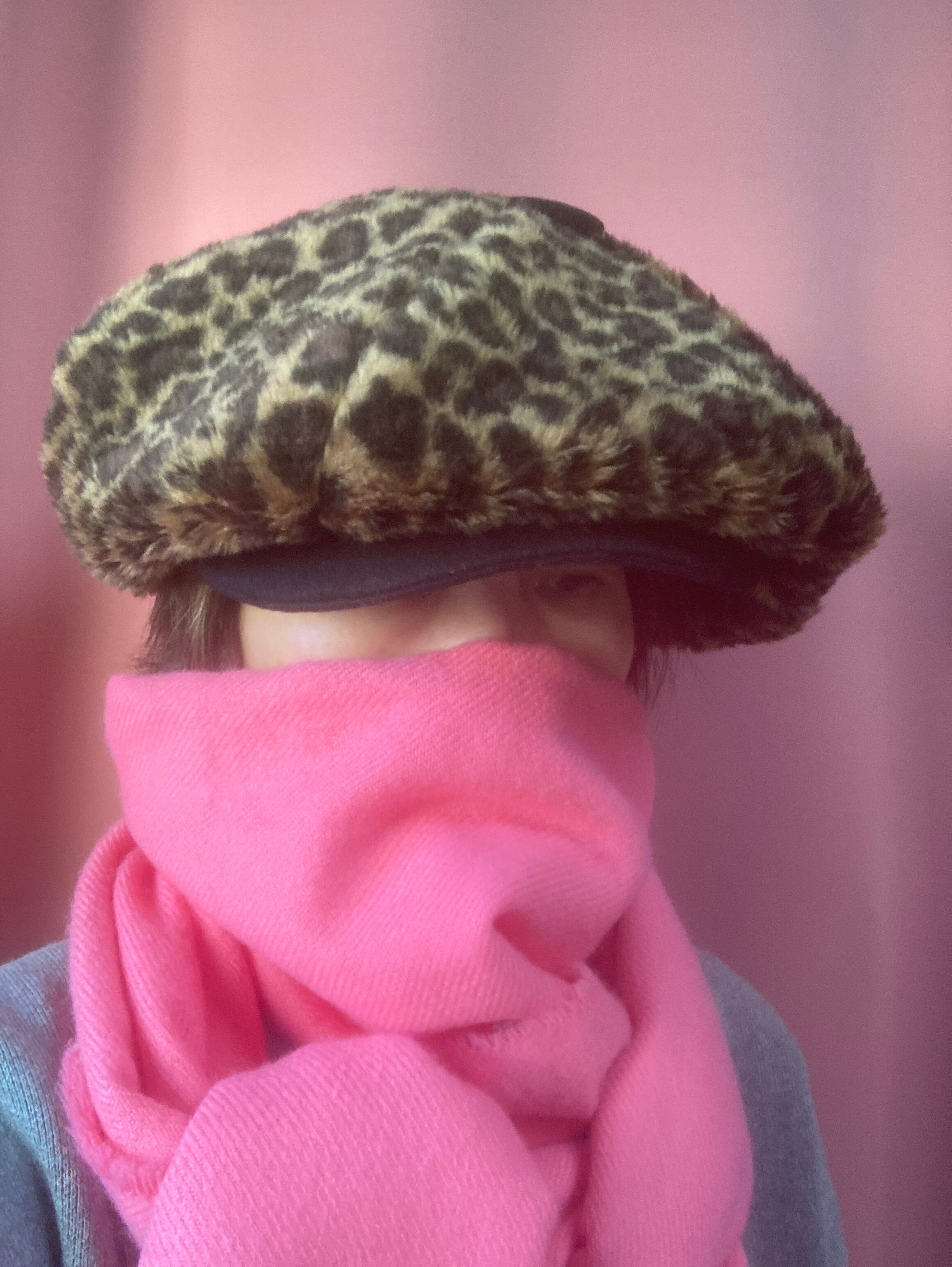 ひょう柄のフェイクファーを使ったビッグキャスケット
