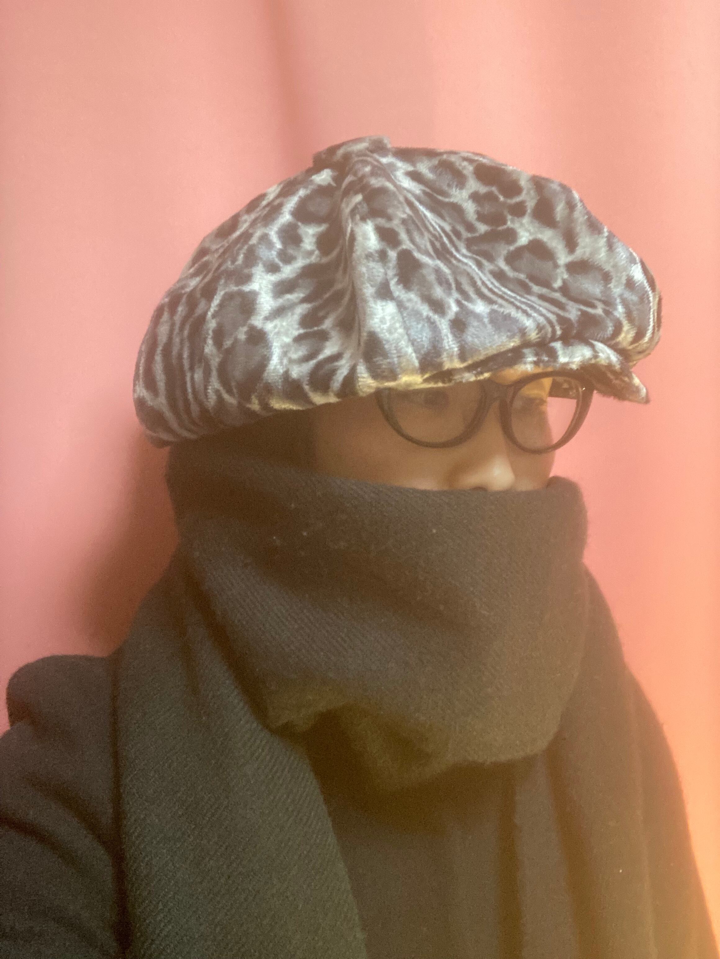 クールでかっこいい感じのグレーのひょう柄キャスケット